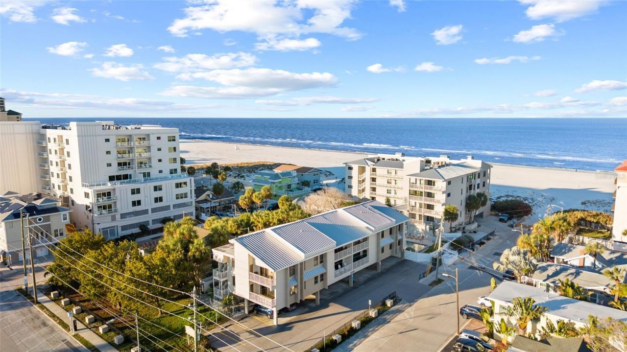 Rare opportunity to own a fully furnished end-unit condo just steps from the white sands of Clearwater Beach! Approved for short-term rentals with a 7-day minimum and currently operating as an active short-term rental, making it a standout opportunity for investors and beach lovers alike. This 2-bedroom, 2-bath residence features 1,100 square feet of open-concept living with tile flooring throughout, ideal for easy coastal living. The kitchen is well-appointed with granite countertops, wood cabinetry, stainless steel appliances, pendant lighting, and a breakfast bar, opening seamlessly to the main living space. Enjoy Intracoastal views from your private balcony, along with access to a heated community pool, reserved covered parking, and exceptional storage, including an in-unit laundry closet, two interior storage closets, and a private 7' x 5' exterior storage room. The primary suite offers a walk-in closet and en-suite bath, while the split-bedroom layout provides comfort and privacy for guests. The building has undergone recent improvements, including updated balcony railings and exterior paint (2021), a metal roof (2014), HVAC (2018), and water heater (2019), and the unit sustained no damage from past hurricanes. Pickleball enthusiasts will love the close proximity to the newly added pickleball courts at McKay Park-an awesome nearby amenity for active coastal living. Walk to top-rated dining, shopping, and entertainment, or simply step outside and enjoy the beach lifestyle. Whether you're looking for a short-term investment property, second home, or primary residence, this is a rare chance to own in one of Clearwater Beach's most desirable locations.
