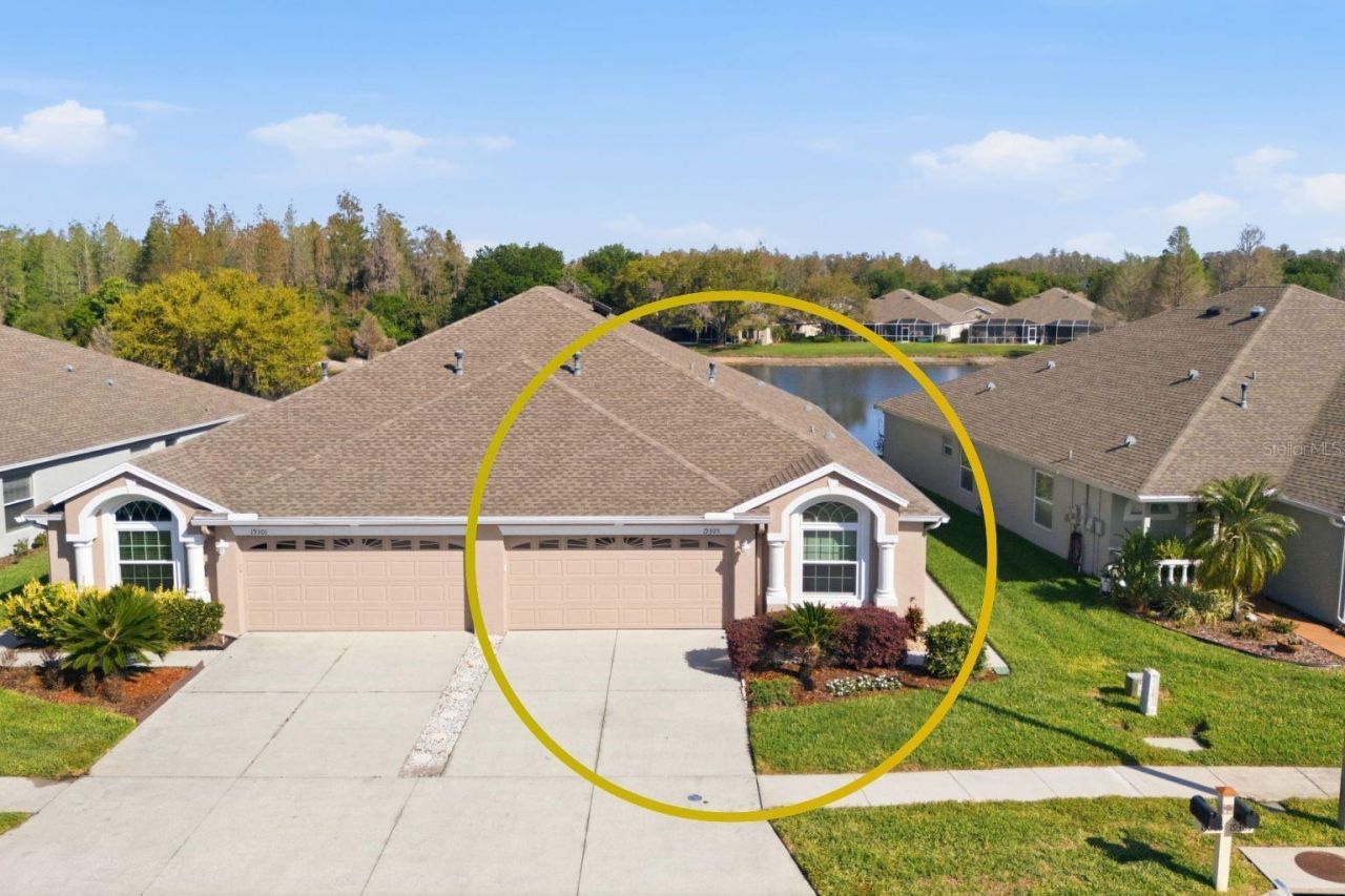 Welcome to maintenance-free living in the sought-after gated section of Oakstead. This beautifully maintained 2 bedroom, plus den, 2 bath, 2-car garage villa offers over 1,700 sq ft and sits on a peaceful pond-view homesite. The open floor plan features a gourmet kitchen with abundant cabinetry and counter space, stainless steel appliances, and a gas cooktop overlooking the dining area and family room. Sliding glass doors lead to a screened lanai with tranquil pond views, perfect for relaxing at the end of the day. The primary suite includes a walk-in closet, dual vanities, and an oversized walk-in shower, while the guest bedroom and bath are located at the front of the home for privacy. Enjoy true maintenance-free living with a low HOA fee covering the roof, exterior paint, lawn care, and irrigation. Recent updates include a new roof (2023 - HOA responsibility), Carrier A/C (2023), new windows and sliding glass door (2016), and newer appliances. Oakstead offers resort-style amenities including a clubhouse, pool, fitness center, playground, tennis courts, scenic walking trails, and a full calendar of community activities. Conveniently located near SR-54 and the Suncoast Parkway with easy access to shopping, dining, and Tampa. Schedule your private showing today.
