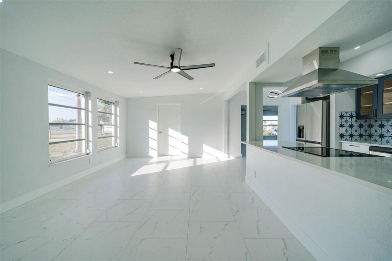 Pleased to present this fully renovated 3-bedroom, 2-bath waterfront residence in excellent Port Charlotte Area. Offering just under 1,900 square feet of thoughtfully designed living space. Completely renovated from top to bottom, this home features a brand-new roof and new central HVAC system, providing peace of mind and modern efficiency. Step inside to discover porcelain tile flooring throughout, natural and recessed lighting. This home enjoys an open layout, and a brand-new kitchen equipped with stainless steel appliances, new cabinetry, and sleek countertops and backsplashes -perfect for both everyday living and entertaining. Both bathrooms have been fully remodeled with contemporary finishes and clean, modern design.Outdoor area features an enclosed private pool and landscaping overlooking a serene waterfront canal view with your private pool and dock slip. Move-in ready and impeccably upgraded, this waterfront home offers the perfect blend of comfort, style, and functionality in a prime Port Charlotte location.