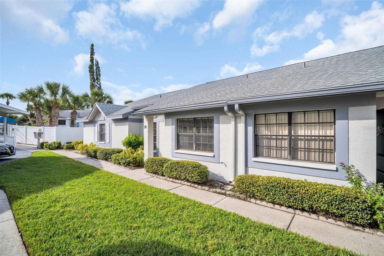 TURNKEY. MAINTENANCE FREE. LOCATION. Tucked away in the heart of Countryside, this beautifully maintained 2-bedroom, 2-bath villa offers the perfect blend of style, comfort, and low-maintenance living. From the moment you arrive, pride of ownership shines through every detail-making this home truly move-in ready. Step inside to discover an upgraded kitchen, complete with wood cabinetry, gleaming granite counters, and backsplash that adds just the right touch of sophistication. The open-concept layout flows seamlessly into the spacious living room, where vaulted ceilings and natural light create an inviting, airy feel. Enjoy morning coffee or evening relaxation in the dining area, where sliding glass doors open to a fully enclosed lanai-ideal for year-round enjoyment. With no rear neighbors, you'll appreciate the peace and privacy this villa offers. The primary suite is your private retreat, featuring a beautifully upgraded ensuite bath and plenty of closet space. A versatile flex space, currently used as a study, can easily serve as a guest bedroom with its own adjoining bath-perfect for visitors or a home office. Additional conveniences include a full-size laundry closet with upgraded front-load washer and dryer, a brand-new HVAC system, and the bonus of being sold fully furnished-including window treatments. With two assigned parking spaces (one covered), you'll always come home with ease. Best of all, you're just steps from the community pool and clubhouse, where you can unwind after a long day. Additionally, the pool is seasonally heated. And the location? Unbeatable. You're only minutes from Countryside Mall, Tampa, St. Pete, the Clearwater Library, recreation centers, top restaurants, and just a short drive to Dunedin's beaches and ballpark. All that's left to do is move in and start enjoying the Florida lifestyle you've been dreaming of!