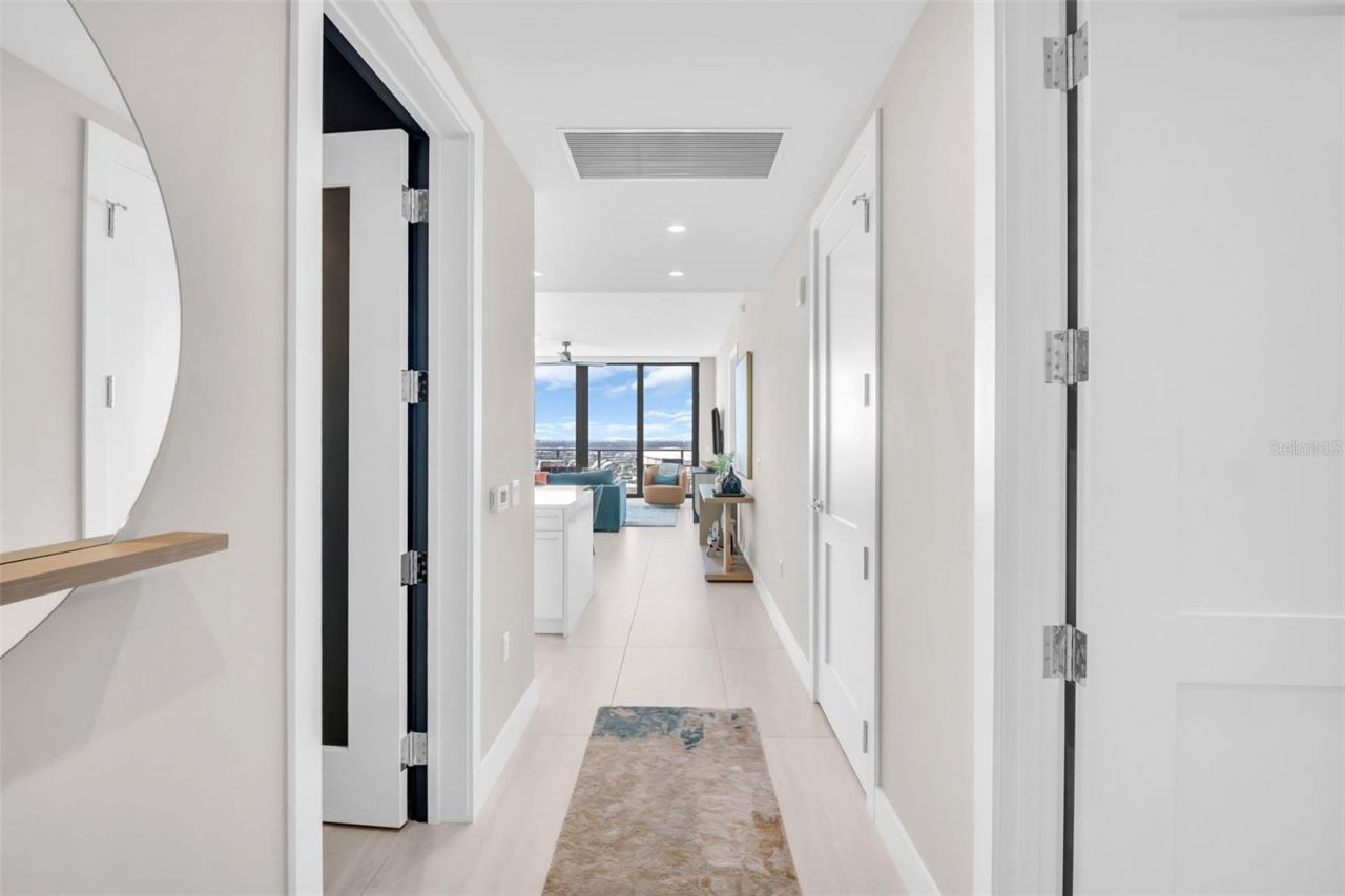 Experience elevated downtown living in this professionally designed 2-bedroom plus den, 2.5-bath residence at Saltaire, offering 1,663 square feet of refined interior space and breathtaking, sky-high views. From sunrise over the water and marina to sweeping city skyline vistas and the dynamic backdrop of Albert Whitted Airport, this home delivers a front-row seat to St. Petersburg's most iconic scenery.Inside, sophisticated design and thoughtful upgrades create an effortlessly luxurious atmosphere. Porcelain tile flooring throughout, designer lighting, and high-end wallpapered accent walls elevate the space, while a striking coastal-style backsplash and wine chiller add both beauty and function to the gourmet kitchen. Electric blinds enhance comfort and convenience, allowing you to tailor light and privacy with ease. Furniture is negotiable, offering flexibility for a truly turnkey experience.This residence also includes two convenient parking spaces and a private storage unit, a rare and valuable perk in downtown living.Beyond your front door, Saltaire offers a lifestyle defined by world-class amenities: a resort-style pool and spa, multiple elegant club rooms for entertaining, a full-service fitness center, and a dedicated dog park for four-legged residents. The seventh-floor open-air deck provides panoramic views of Tampa Bay and the downtown waterfront-an unforgettable setting for sunsets and gatherings.Ideally located in the heart of downtown St. Petersburg, enjoy effortless access to waterfront parks, marinas, acclaimed dining, boutique shopping, and cultural destinations just steps away.