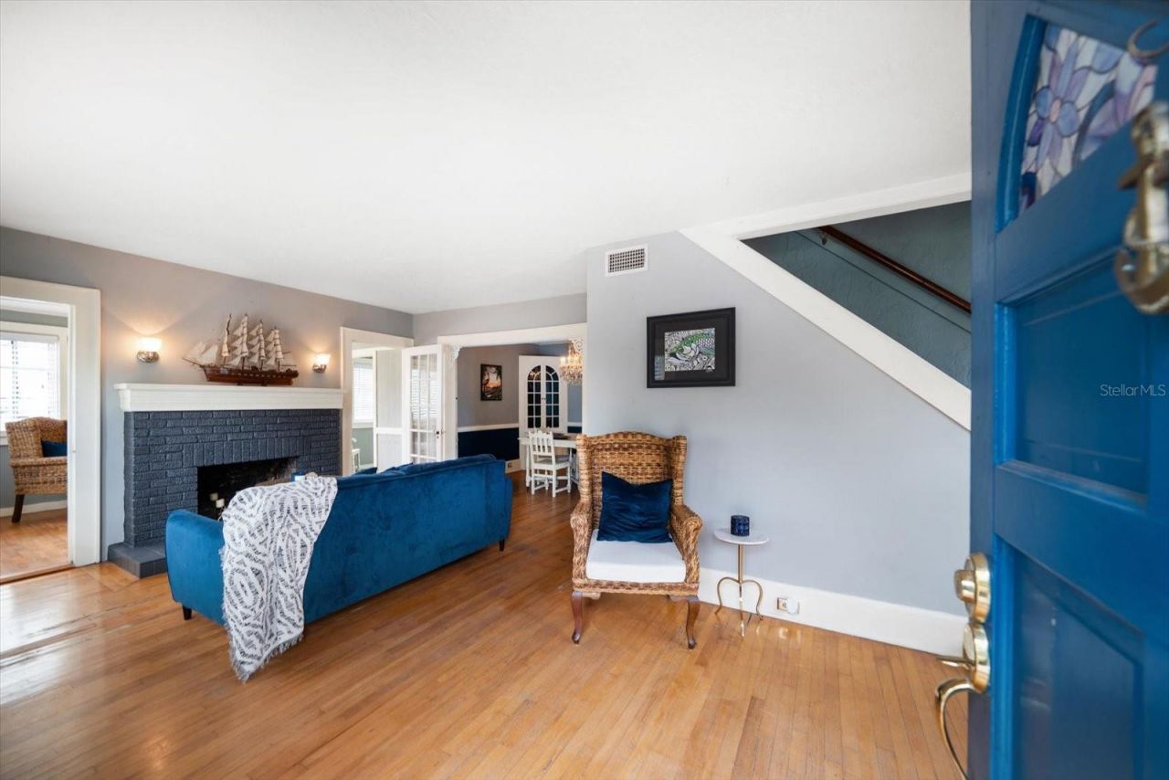 One or more photo(s) has been virtually staged. A Rare Opportunity to Restore a Piece of Clearwater History.Brimming with character and potential, this timeless home in the Clearwater Country Club community offers a rare blend of history, charm, and location. Steeped in a century of stories, it awaits a new owner ready to bring it back to its full glory. Inside, you'll find original wood floors, detailed millwork, and built-ins that showcase the craftsmanship of another era. The spacious living room, anchored by a wood-burning fireplace, sets a warm and inviting tone, while the adjoining dining room and kitchen provide an excellent layout for entertaining or formal dining. The kitchen has been fully renovated, featuring stainless-steel appliances and a center island - a perfect foundation for your dream space. French doors open to a generous backyard retreat with a patio and firepit area, offering room to reimagine your outdoor oasis. The detached oversized two-car garage and workshop provide ample space plus potential for a workshop or guest suite. The primary suite is conveniently located on the main floor, and upstairs you'll find three additional bedrooms, an updated bath, and a separate office or fifth bedroom. Set in the desirable Presidential neighborhood - one of Clearwater's most historic enclaves - this property is ideal for those who appreciate old-world character and aren't afraid to make improvements. Bring your vision, creativity, and a bit of TLC to transform this diamond in the rough into something truly special.