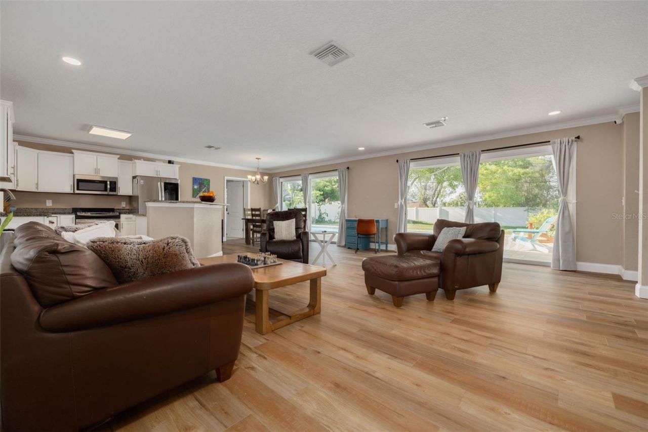 Located in the highly sought-after Del Oro Estates, this beautifully updated 3-bedroom, 3-bath pool home at 3180 San Pedro Street offers the perfect combination of modern upgrades, functional layout, and an exceptional oversized lot. From the moment you arrive, the manicured landscaping and newly pavered walkway create inviting curb appeal. Inside, you're welcomed into a spacious open floor plan filled with natural light and designed for both everyday living and entertaining. The main living area features new luxury vinyl flooring and seamless views of the pool and expansive backyard, bringing the outdoors in. The updated kitchen is the heart of the home, showcasing white shaker cabinetry, granite countertops, and a center island, all flowing effortlessly into the main living and dining areas. Just off the kitchen, a large laundry room with built-in cabinetry provides excellent storage, along with a full pool bath for added convenience. The primary suite offers a private retreat with direct access to the lanai, dual closets, and a beautifully updated en-suite bathroom. Down the hall, two additional bedrooms and another updated bathroom provide comfortable accommodations for family or guests. Step outside to enjoy the true Florida lifestyle with a spacious pool area, a newly pavered back patio, and a huge backyard-ideal for entertaining, relaxing, or even future expansion. Major updates provide peace of mind, including a 2019 roof, 2020 water heater, Trane HVAC system with Halo UV light (2020), newer ductwork, and impact windows throughout. This home offers more than just beautiful living spaces-it delivers an exceptional lifestyle. Just across from Cooper's Bayou Park, residents enjoy access to fishing, scenic trails, an exercise course, and a launch for kayaks or canoes. The newly redesigned Del Oro Park features pickleball courts, a playground, and basketball courts, while the Ream Wilson Trail invites outdoor enthusiasts to explore picturesque routes leading to Safety Harbor or Tampa via the Courtney Campbell Causeway. Hop in your golf cart and head to downtown Safety Harbor, where Main Street offers dining, boutique shopping, breweries, museums, live music, and year-round events like the Third Friday Street Festival and Sunday Farmers Market. The Safety Harbor Marina and the world-renowned Safety Harbor Resort and Spa are just minutes away. Best of all, this home is not located in a required flood insurance zone-adding both peace of mind and savings. Complete with a 2-car garage and located in one of the area's most desirable neighborhoods, this move-in ready home is a rare opportunity where charm, convenience, and recreation come together beautifully.