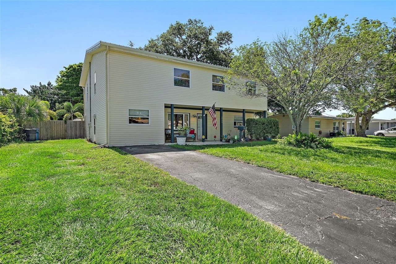 Discover this expanded 3-bedroom, 2-bath home in the heart of Jungle Terrace-just a block from Walter Fuller Park and minutes to boat launches, the Pinellas Trail, and beaches. The sellers have loved this home and location for 33 YRS, continuously adding value, including a second story! With over 3,000 SF total, this home combines modern updates with rustic charm, including a 2020 metal roof, 2024 kitchen remodel, vinyl plank flooring on the main level, and newer carpet upstairs. The entire home is one large open concept that creates a welcoming atmosphere. The kitchen blends charm with smart design and is ideal for entertaining. Curved doorways, subway tile backsplash, white shaker cabinets, stainless-steel farmhouse sink with sprayer faucet, and a pass-through bar into the game room make it both functional and a focal point of the home. Storage stands out with: Dual corner two-tier rotating pantry shelves Slide-out seasoning drawer next to the stove A full pantry room.Top-tier appliances include: LG InstaView side-by-side refrigerator with water/ice dispenser and knock-to-view panel GE glass cooktop LG stainless microwave with touch-screen options LG stainless dishwasher with interior stainless tub Project Source 3/4 disposerUpstairs offers a spacious primary retreat with unique cutouts connecting to the living space below. The layout fits a full bedroom set, chaise lounge, or an in-room nursery, with a walk-in closet and ensuite bath. The primary bath has a Jacuzzi tub, walk-in shower, dual sinks, and linen closet. The second bedroom is also oversized, and a third room is bedroom-sized but lacks a closet. A cozy loft nook works great as a playroom or chill reading space. If the home itself doesn't offer enough storage space, there are two drop down attic stairs in the bedrooms. There is a theater-style family room PLUS a game room that feature knotty pine wood trim and beams, a multi-game table, and sliders that open to the screened lanai. Designed for comfort, there are remote-controlled ceiling fans with lights in all the right places and dual A/C systems for upstairs and downstairs. The first-floor laundry room has slate gray GE Profile top loader washer and dryer with a built-in folding countertop, hanging rod, and storage cabinets. Added touches include recessed lighting, stair casing built-ins, under-stair storage, and custom stair railings with wooden newel posts and slim black metal spindles-blending warmth with a modern edge. They even thought about the pets during the remodel: a catwalk connects the loft to the primary bedroom. The outdoor space is phenomenal. A covered front porch offers rocking chair room for neighborhood watching or escape to your own tropical oasis with a freestanding plunge pool/spa, lush landscaping, and a 2023 wood privacy fence with dual gated entries-ideal for storing an RV, boat, or jet skis. The location doesn't get much better than this. You can walk to the park up the street that has a fishing lake, trails, sports fields, dog park, tennis, pickleball, and lap swimming pool with diving board and slides. Close to restaurants, groceries, and shopping that includes the Tyrone Mall. There's no HOA or deed restrictions; you can even have chickens if you would like. Don't miss this opportunity to own in the historic Jungle Terrace neighborhood. Check out the virtual tour, property upgrade sheet, and when you're ready to own your own retreat, schedule an in-person showing.