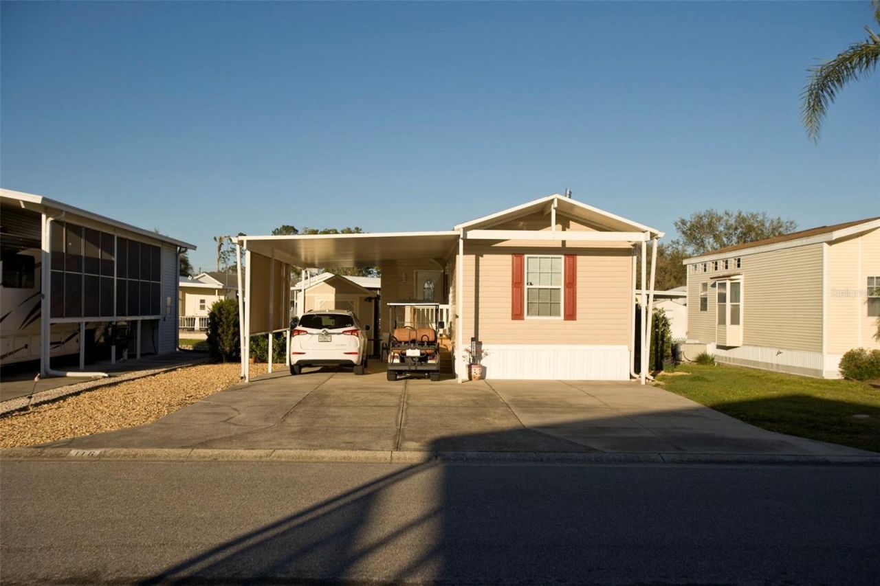 This fabulous, fully-insurable, almost new 2018 park model sits on the canal at American Condominium Parks Zephyrhills! Only 1 owner! Sit back and enjoy the water view from your living room bay windows. Or step out on the piazza by the water to watch the wildlife in and around your seawall. Enjoy dining in the beautifully appointed dining area. Beautiful wood cabinets in this home! The all electric kitchen is sparkling, modern and efficient. The bedroom has a large built-in closet. This house is full of light; and the double-pane, energy-efficient windows hinge inside for easy cleaning! This home is well insulated and the electric bill reflects that. There is a shed for storage in the 15' x 30' covered car port. There is even extra storage beneath the 3 porch stoops! The relaxing views, gorgeous wooden cabinets, luxury vinyl flooring and plenty of storage make this almost brand new home a must-see! Call for an appointment. American Condominium Parks Zephyrhills is a 55+, gated community with heated pool, clubhouse, exercise room, sauna, hot tub, tennis/pickleball courts, horse shoe pits, shuffleboard, and many more amenities. A friendly active community with dances, dinners, and fun entertainment. Perfect for full time, affordable living; and cost effective for snow birds. No rent as YOU OWN THE LAND. There is a reasonable monthly fee that maintains the common elements and amenities for your use.