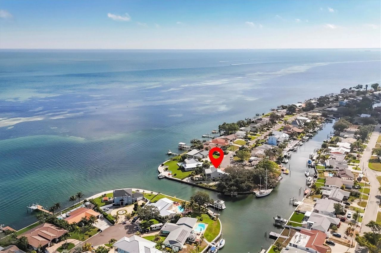 One or more photo(s) has been virtually staged. Beautiful waterfront home with amazing views of Tampa Bay! Just over 1/3 acre and 180ft of seawall, this property offers many ways to enjoy outdoor living. A boaters dream! Rear balcony and patio overlook heated saltwater pool, spa with breath taking views. Relax in the shade from the large oaks near the dock and boatlift while catching a glimpse of a dolphin or manatee. While inside you will enjoy water views from most rooms. Spacious great room, dining, kitchen and half bath are on the second floor with 3 bedrooms and two baths tucked away downstairs for privacy. Convenient St. Pete location. Just a short drive to downtown St. Pete. Call for your private viewing today!