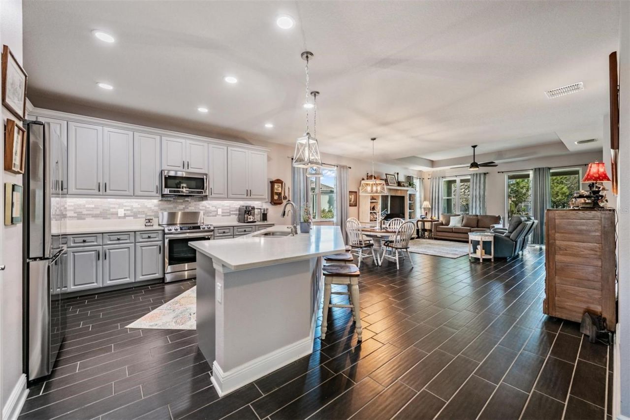 STUNNING 4 BEDROOM, 3.5 BATHROOM, WITH OFFICE IN HIGHLY SOUGHT STARKEY RANCH! This home's Kitchen and 3 Bathrooms were just remodeled. The Kitchen boasts Quartz Countertops, 42 wood cabinets with soft close doors, Stainless Steel Appliances, Tile backsplash, Island/Breakfast Bar, and Walk-in pantry! The Primary Bed/Bathroom is downstairs and features a Walk-in closet, Dual Vanity topped with Quartz, and Walk-in shower! Upstairs you will find a spacious room with a full bathroom and walk-in closet, perfect for a guest retreat, office, or play room! Other great features inside include Wood-like tile flooring throughout downstairs, new light/fan fixtures throughout home, and a high-end Kinetico Water softner! Stepping outside, there are both front and back porches to choose from when relaxing outside! Both are covered in pavers and are very comfortable! This home is located within walking distance to one of Starkey Ranch's best parks - Cunningham Park, which has a 1 mile walking trail around its scenic lake! All of this in the highly sought community of Starkey Ranch which provides easy access to Tampa and Clearwater! Starkey Ranch amenities include community pools, several parks and playgrounds, dog park, scenic walking trails, and incredible fishing! This one will not last, so schedule your showing now!