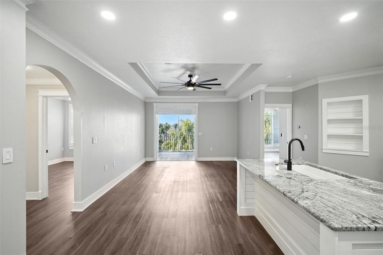 Available April 1! This designer-renovated 2-bedroom, 2-bath condo is located in the GATED BAYFRONT community of Island Club at Rocky Point and offers 1,176 square feet of well-designed living space. The interior features a modern black-and-white aesthetic with elevated ceilings, crown molding, and an open layout that feels sleek and magazine-worthy. A true centerpiece, the kitchen STANDS OUT with quartz countertops, an oversized island, 42-inch cabinetry, a custom backsplash, and a full LG stainless-steel appliance package, all complemented by a spacious pantry with in-unit laundry. The split-bedroom floor plan offers ideal privacy, with the primary suite featuring a walk-in closet and a beautifully updated en suite bathroom with bold designer tile, while the second bedroom includes a walk-in closet and access to an equally updated guest bathroom with a walk-in shower and spacious vanity. A screened-in lanai extends the living space, creating an inviting space to relax with a book, while NEW hurricane-rated windows have been installed throughout. Internet and cable TV are INCLUDED in the rent, and the unit is offered partially furnished, including a queen-size bed with mattress, two accent chairs, four barstools, and a TV. The unit also features a PRIVATE GARAGE (Unit 5D) with a dedicated parking space in front, along with one parking sticker for residents. Residents of the gated Island Club community enjoy a variety of amenities including a waterfront clubhouse, fitness center, pool, hot tub, sauna, patio seating with gas grills, walking and biking paths, and a community dock overlooking Tampa Bay, all set in a prime location just minutes from Tampa International Airport, downtown Tampa, the Gulf beaches, top dining, and major commuter routes.