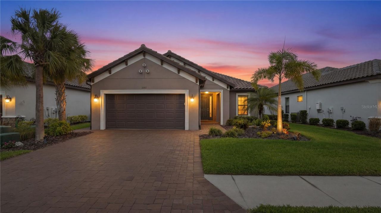 Welcome to one of the most desirable homes in Esplanade at Artisan Lakes, where upgraded design and breathtaking lake views create a truly standout living experience. Perfectly positioned on one of the community's largest lakes, this sought-after Farnese model offers approximately 2,100 square feet with 3 bedrooms and 2.5 baths, thoughtfully designed for both everyday living and entertaining.Inside, the home showcases tray ceilings throughout key living spaces, crown molding, custom wood accent walls, and a built-in electric fireplace feature wall in the den. All bedrooms include custom closet systems, and the laundry room is enhanced with added cabinetry and a decorative tile backsplash.The gourmet kitchen is a true showpiece, featuring a wall oven, separate cooktop, wine cooler, and under-cabinet lighting. The oversized island is upgraded with full cabinetry for added storage and decorative (deco) doors, creating both function and visual impact. The kitchen opens seamlessly to the great room and flows into an extended covered lanai-perfect for indoor-outdoor living.Expansive pocket sliding doors lead to a covered lanai and a resort-style outdoor space complete with a custom heated pool featuring smartphone automation, spa jets, waterfall, and deck jets-all enclosed by a panoramic screen with unobstructed lake views. The extended covered lanai provides ample shaded space for relaxing and dining, while a fully equipped L-shaped outdoor kitchen and landscape lighting complete this private backyard retreat.Additional upgrades include a 22 kW whole-house generator, MagnaTrack motorized hurricane screen, Bahama hurricane protection, full gutters, Culligan water softener, extended paver driveway, and a polyaspartic-coated garage floor.With its premium lakefront homesite, extensive upgrades, custom pool and outdoor kitchen, and full storm protection, this home offers a rare opportunity to enjoy a fully upgraded Florida lifestyle without the wait.Residents enjoy resort-style amenities including clubhouses, fitness center, tennis and pickleball courts, walking trails, and a vibrant social calendar-all conveniently located near I-75 with easy access to Sarasota, St. Petersburg, and Gulf Coast beaches.