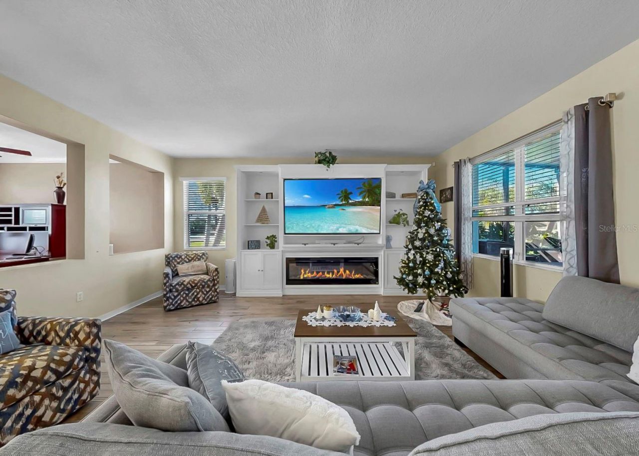 Welcome to a private, beautifully upgraded waterfront retreat in the heart of Harbour Isles. Set on a premium oversized homesite with no neighbor on the south side and tranquil pond views, this home offers a rare combination of privacy, space, and a resort-style outdoor living experience.The interior is light-filled and open, designed for both everyday comfort and entertaining. The main living areas flow seamlessly. Generous gathering spaces including a dedicated office or den and loft upstairs that works perfectly as a media room, playroom, or second family room.The kitchen was completely refreshed in 2023 with new cabinetry, granite countertops, and new appliances, creating a modern focal point that connects beautifully to the living and dining spaces. A custom built-in entertainment center with a modern electric fireplace adds both style and function, while updated flooring throughout the home creates a cohesive, clean, and contemporary feel. Roof was refreshed in 2025.Step outside to your own private backyard oasis. The screened lanai and pool overlook the peaceful pond, offering a true resort-style setting ideal for relaxing evenings, weekend entertaining, or simply enjoying the Florida lifestyle in privacy and comfort.This home has been thoughtfully improved and maintained, including a newer water heater, finished garage floors, updated kitchen and flooring, and multiple custom touches that elevate the overall feel of the property.Located within the Harbour Isles community, residents enjoy access to a clubhouse, fitness center, community pool, playground, parks, and sports courts. The neighborhood is ideally positioned near shopping, dining, waterfront activities, and major commuter routes, making it easy to reach Tampa, Brandon, MacDill AFB, and the Gulf beaches.This home delivers plenty of rooms and space for the perfect balance of lifestyle, comfort, privacy, and convenience in one of Apollo Beach's most desirable communities.