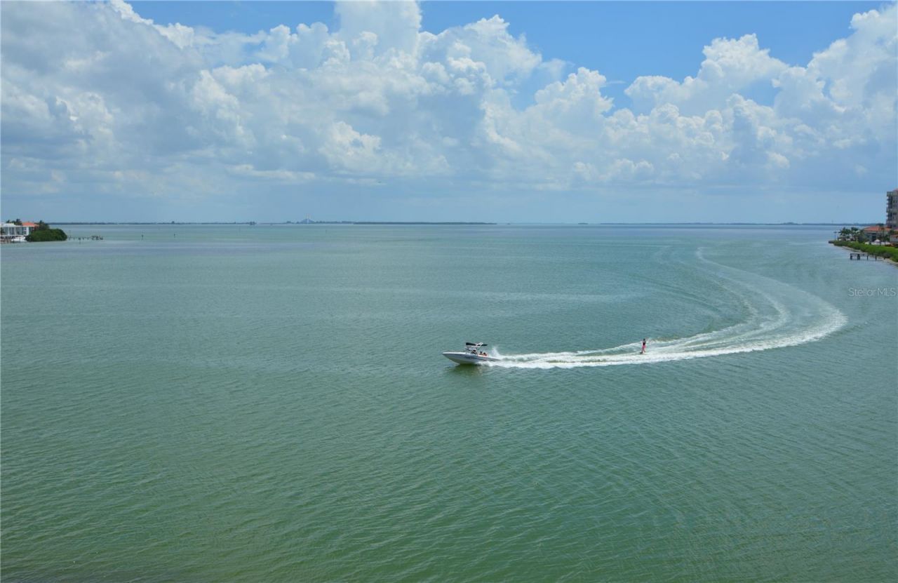 UNOBSTRUCTED VIEWS OF TAMPA BAY & THE SKYWAY BRIDGE from every room in this 3rd-floor 2BR/2BA condo in Vista de Oro at Playa Escondida, Isla del Sol's premier waterfront community! From the moment you open the door, you are greeted with breathtaking panoramic vistas, a natural sanctuary with daily dolphins and manatee sightings. Spacious kitchen with eat-in area-spotless yet retro-ideal for a modern remodel. Pass-through window could easily open to a breakfast bar or island. Expansive living/dining area opens to a rare wraparound balcony spanning both bedrooms, perfect for entertaining. The split floor plan provides privacy with the primary suite featuring oversized walk-in closet, spacious original separate vanities, generous walk-in shower, and sweeping Tampa Bay views directly from your bed. Guest suite includes dual closets, full bath, and another wall to wall sliding door with balcony access. Laundry closet is conveniently located by the kitchen, new water heater, HVAC (2023). Assigned under-building covered parking plus guest parking. The community features resort-style amenities: new waterside pool with hot tub, gazebo, and a dream beach view. Perfect location if you decide to join the Isla Del Sol Yacht and Country Club and their golf course membership. Just 10 min to downtown St. Pete, 30 min to Tampa Int'l, close to Fort De Soto beaches. Quick elevator ride to your own private beach. Rare opportunity to create your dream waterfront home with the best views in Isla del Sol. Located in well maintained building which has completed its reserve study milestone report and all necessary repairs with assessments already paid.