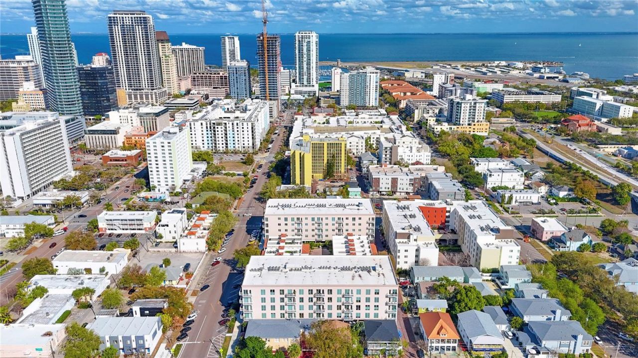Experience elevated downtown living in this spacious west-facing third-floor condominium offering two bedrooms and two full bathrooms. High ceilings throughout enhance the open and airy feel, while the thoughtfully designed floor plan allows the dining area to flow seamlessly into the kitchen and living space-perfect for entertaining or relaxed everyday living.The kitchen is appointed with sleek Bosch stainless steel appliances and opens beautifully to the main living area. Both the primary and guest bathrooms are generously sized, providing comfort and privacy for residents and guests alike. A private laundry room with a large Samsung washer and dryer adds convenience, while an oversized storage closet off the dining room provides additional space rarely found in condominium living.The secure gated building offers excellent amenities including a fitness center, dog wash station, dog run, and an upscale shared kitchen, living, and dining space and outdoor patio space on the ground level-ideal for gatherings and socializing with neighbors.This unit includes one ground-level garage parking space with bike racks, and street parking is available with a city permit. With easy access to the interstate and located just moments from the energy of downtown St. Petersburg, residents can enjoy a walkable lifestyle near Tropicana Field, The Pier, the Mahaffey Theater, Al Lang Stadium, and an incredible selection of restaurants, shops, and nightlife.