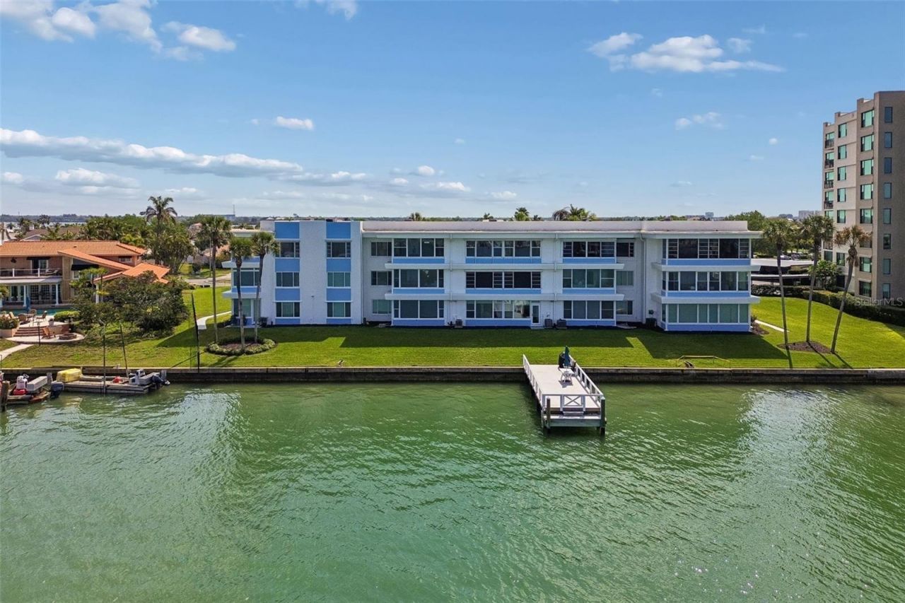 Welcome to Island Estates, where waterfront living meets effortless coastal style in the heart of Clearwater Beach. From the moment you arrive, you'll appreciate the beautifully maintained community, ample parking, and convenient access via elevator or stairs to this second floor residence. This fully updated 2 bedroom, 2 bathroom condo offers unobstructed panoramic views of Mandalay Bay and a light, airy interior designed to complement its stunning surroundings. Stepping inside, you're welcomed by an open and inviting floorplan filled with natural light and a seamless flow throughout. The upgraded kitchen serves as the centerpiece of the home, featuring granite countertops, a large center island with seating, stainless steel appliances, a wine refrigerator, and custom cabinetry, all thoughtfully designed for both everyday living and entertaining. The kitchen opens effortlessly to the spacious living and dining areas, where custom built-ins, modern paneled doors, and recessed lighting elevate the space while maximizing both function and style. The enclosed lanai adds valuable additional living space and showcases breathtaking water views, creating the perfect setting for morning coffee or evening relaxation. The primary suite offers a peaceful retreat with serene water views, generous closet space, and an updated ensuite bathroom with high-end finishes. A well-appointed secondary bedroom and updated guest bathroom provide comfort and privacy for family or visitors. A full-size washer and dryer are conveniently located within the unit. Recent updates include hurricane and UV protected windows, AC system, water heater, electrical, water softener, and more, offering peace of mind for years to come. The building is well maintained and has successfully passed the required Milestone inspection with no assessments. Step outside to enjoy the community dock, complete with water and electric, ideal for fishing, kayaking, boating, or simply unwinding while taking in the sunset. Residents also enjoy access to a grill and smoker, perfect for waterfront gatherings. Surrounded by a mix of private homes and waterfront residences, this community offers a welcoming and relaxed atmosphere. Located just minutes from Clearwater Beach, Island Way Grill, Publix, local dining, shopping, and downtown Clearwater entertainment, this prime location offers both convenience and lifestyle. Enjoy walking or biking through the neighborhood, or hop on the Jolly Trolley for easy access to the Clearwater Marine Aquarium and nearby attractions. This is your opportunity to own a beautifully updated waterfront condo in one of Clearwater Beach's most desirable communities.