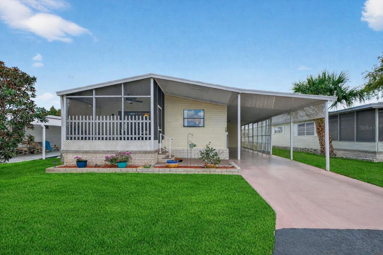 Welcome to relaxed, low-maintenance living in the highly sought-after 55+ community of Club Chalet-a centrally located community featuring comfort, convenience, and outstanding value just minutes from everything you love about Florida living. This inviting 2-bedroom, 2-bath residence with 1,056 square feet of living space is thoughtfully designed to maximize space, storage, and natural light throughout. Vaulted ceilings create an open and airy atmosphere throughout the main living areas, while newer flooring adds a fresh, modern feel and enhances everyday comfort. Large windows allow sunlight to fill the home, creating a bright and welcoming environment from morning through evening. The well-planned layout offers excellent flow between the living and dining areas, making both entertaining and daily living effortless. The kitchen provides generous cabinet and storage space-perfect for keeping everything organized and within reach. The spacious primary bedroom serves as a peaceful private retreat, featuring a walk-in closet and a private en-suite bath, presenting comfort and privacy for everyday living. A well-appointed guest bedroom and second full bath provide ideal accommodations for visiting family and friends. One of the home's standout features is the oversized covered carport with tandem parking for up to three vehicles-a rare and highly desirable amenity in the community. A screened patio extends your living space outdoors, creating the perfect setting to enjoy Florida's beautiful weather, morning coffee, or quiet evenings with friends. Storage is abundant throughout the home, including a large laundry room with additional space ideal for bikes, beach chairs, seasonal items, and hobby equipment-making organization easy without sacrificing living space. Residents of Club Chalet enjoy a relaxed and social lifestyle with a low monthly HOA that provides exceptional value where you own the land. The fee includes water, sewer, trash pickup, cable, and internet, allowing for simplified monthly budgeting. The community also features a heated swimming pool, perfect for year-round enjoyment and connecting with neighbors. Ideally located close to shopping, dining, and everyday conveniences-including shopping, nearby Publix Super Market and Target-this home is also sits high and dry and just minutes from Florida's top-rated Gulf beaches, offering endless opportunities for recreation, relaxation, and coastal adventures. Whether you are searching for a full-time residence or a seasonal retreat, this beautifully maintained home delivers comfort, value, and peace of mind.