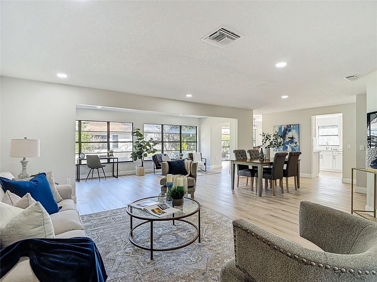 Must see this great deal! Beautifully remodeled 2-bedroom, 2-bath home offering 1,724 sq. ft. of thoughtfully designed living space with a 2-car garage, perfectly positioned on a desirable corner lot. This move-in-ready home showcases fresh interior and exterior paint along with brand-new laminate wood flooring throughout. The open-concept layout features a highly sought-after split-bedroom floor plan, providing both functionality and privacy. The fully renovated kitchen is a standout, complete with elegant quartz countertops, new custom cabinetry, and stainless-steel appliances-ideal for both everyday living and entertaining. Both bathrooms have been completely remodeled with quartz countertops, new cabinetry, updated fixtures, modern lighting, and refined finishes. The spacious primary suite includes a walk-in closet and a beautifully appointed en-suite bath featuring dual vanities and a zero-entry walk-in shower. Conveniently located near shopping, dining, and entertainment, this property offers exceptional value, style, and comfort. This is a fantastic opportunity you do not want to miss.